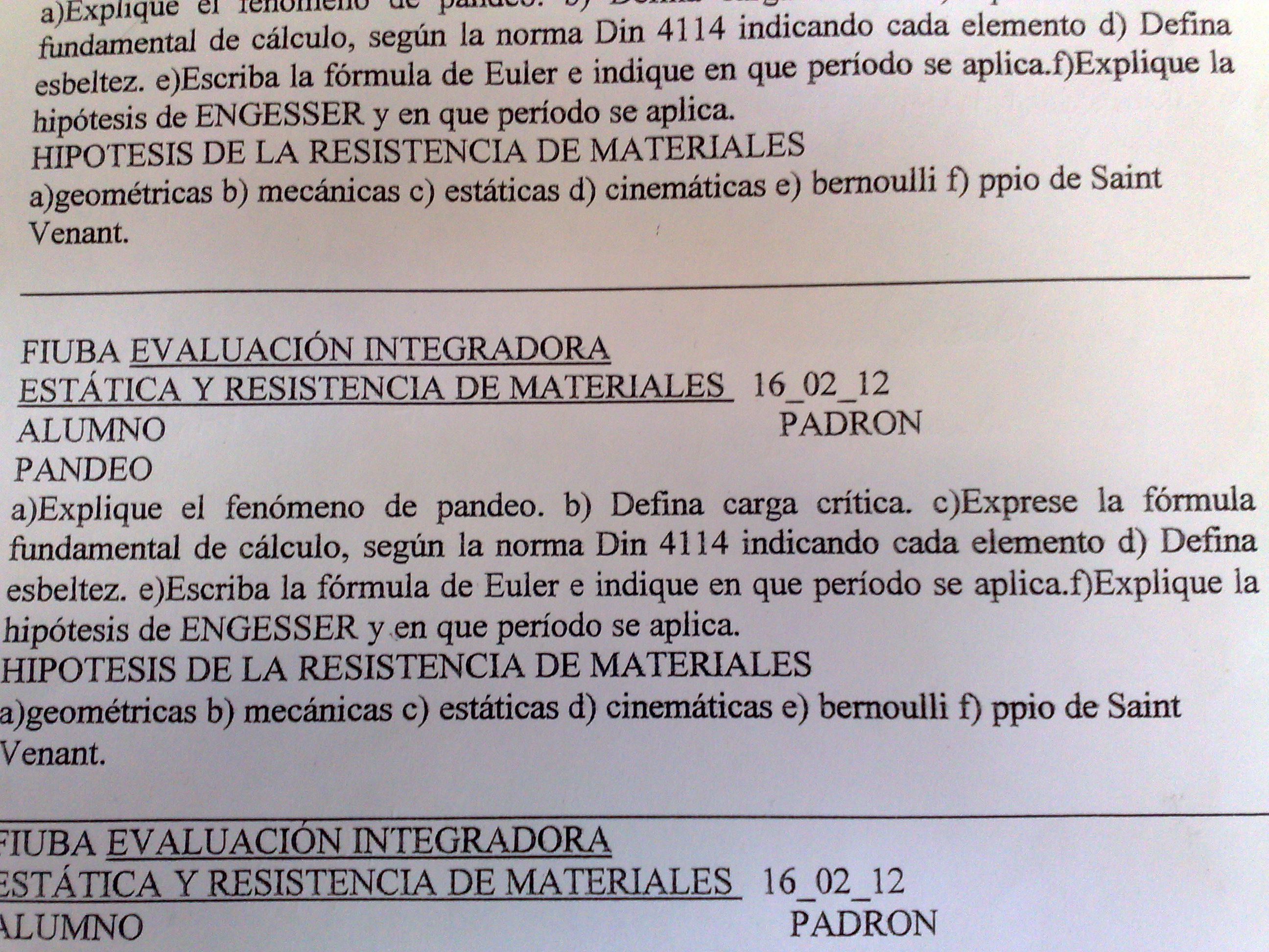 en la parte 2 (práctica) se tomó un pórtico con cargas distribuídas constantes, lineales y triangulares, con una articulación y un reticulado . Se pidió: análisis de isostaticidad, reacciones de vínculo, diagramas de características, distribución de tensiones del reticulado, dimensionamiento de las barras del reticulado más comprometidas a tracción (axil) y compresión (pandeo) y dimensionamiento de una viga IPN del pórtico a flexión compuesta.