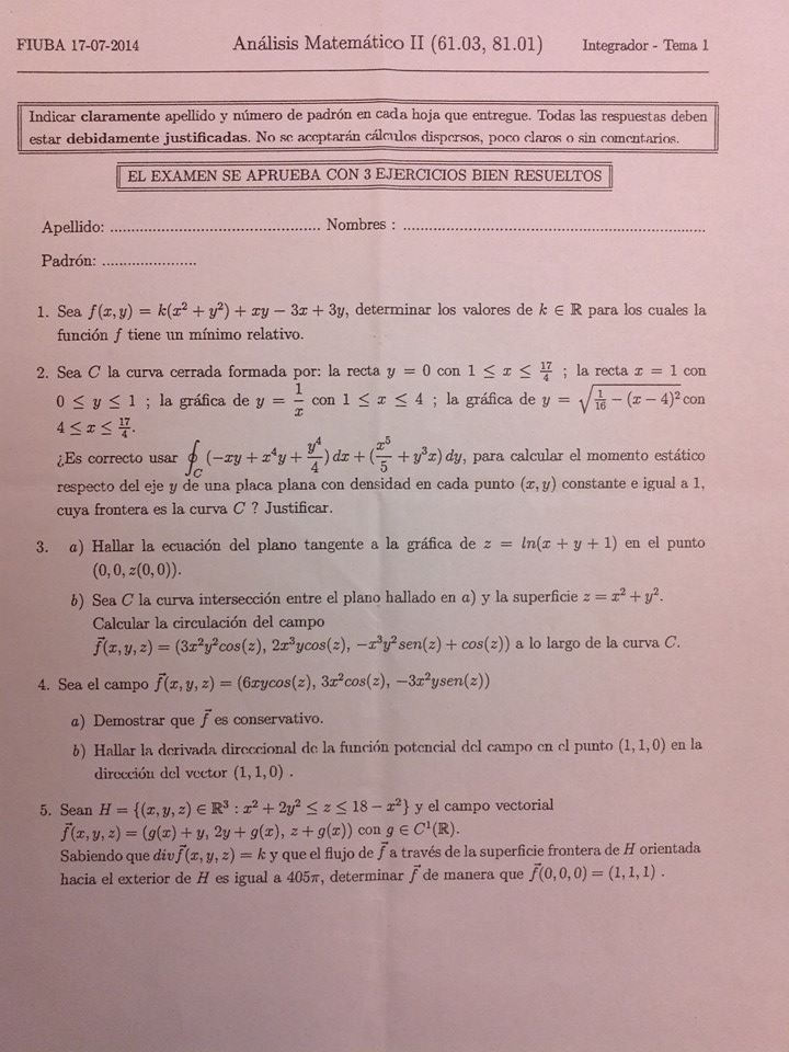 Cátedra: Todas Fecha: Tercera Oportunidad - Verano 2014 Día: 17/07/2014