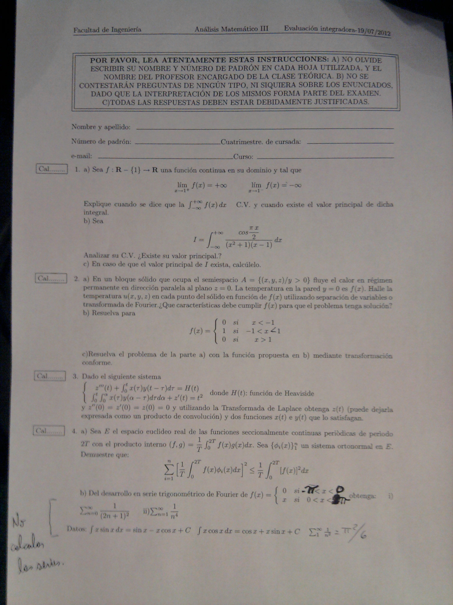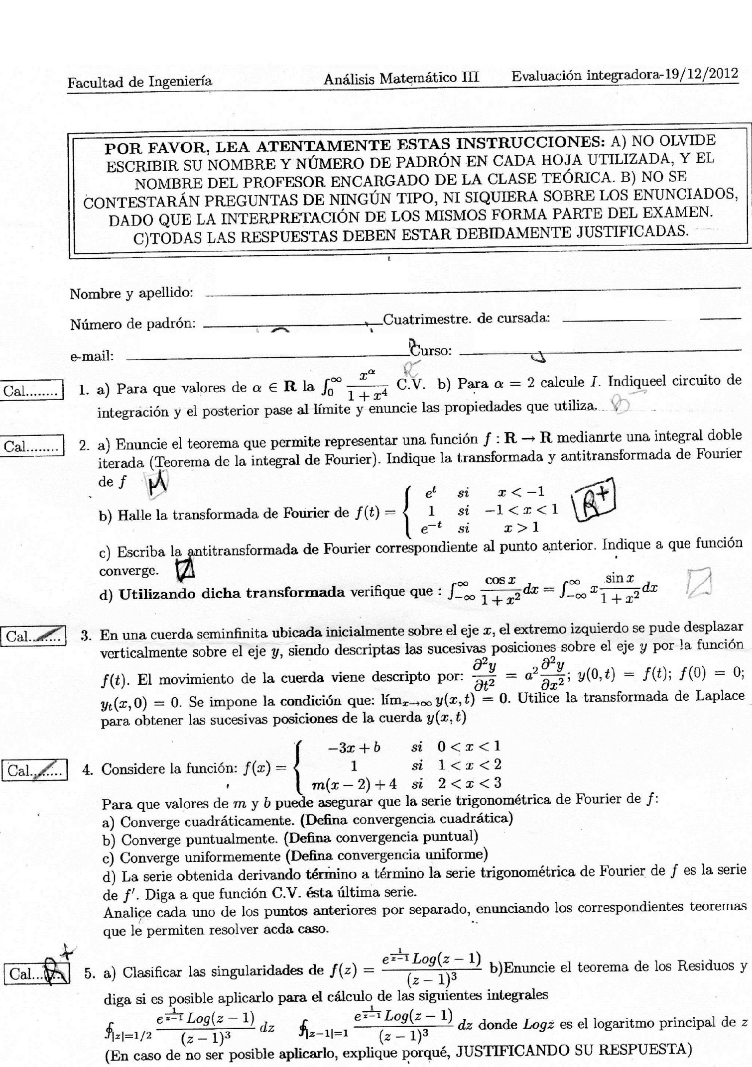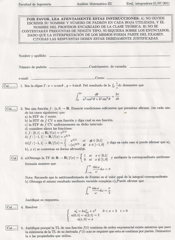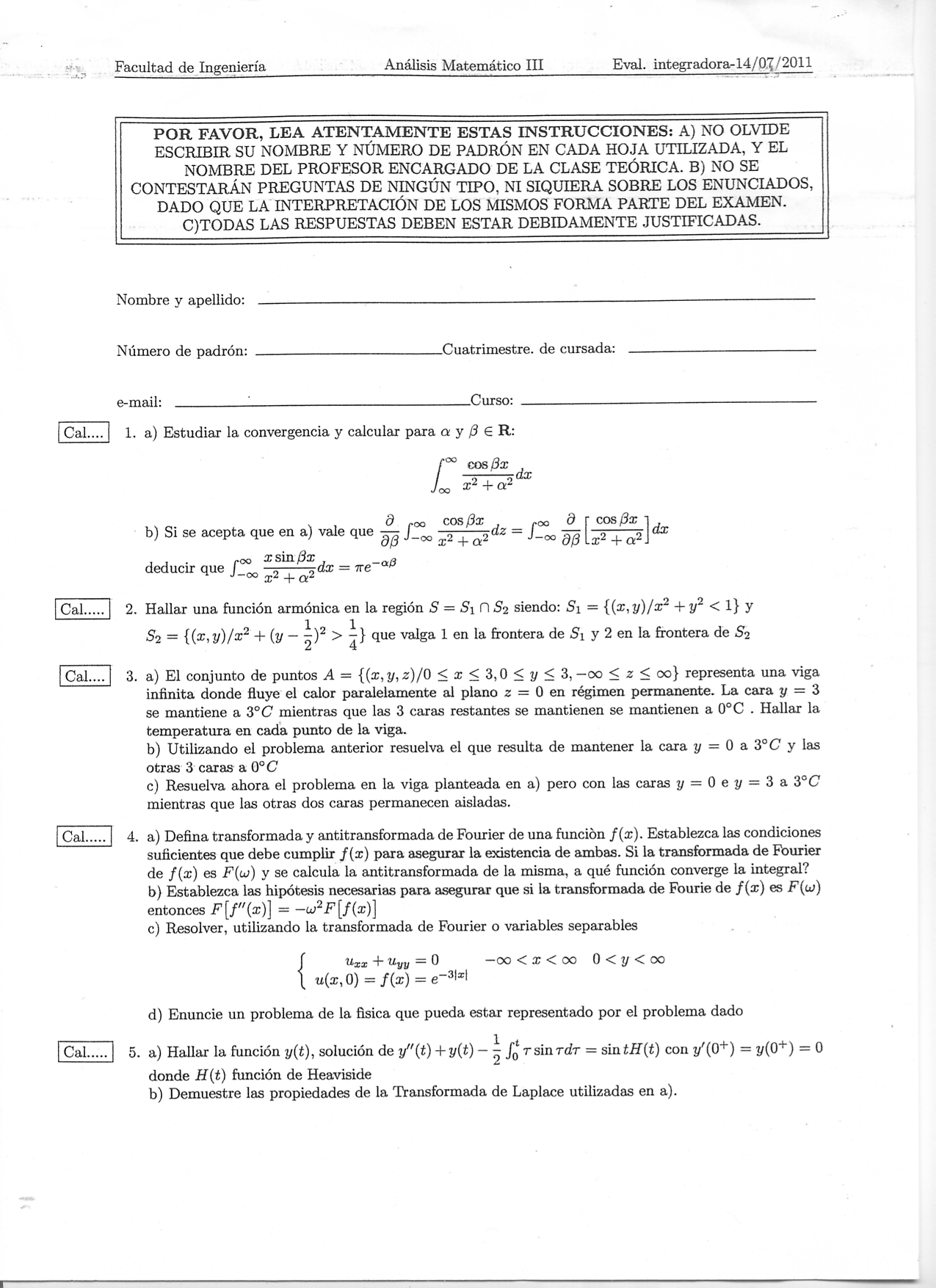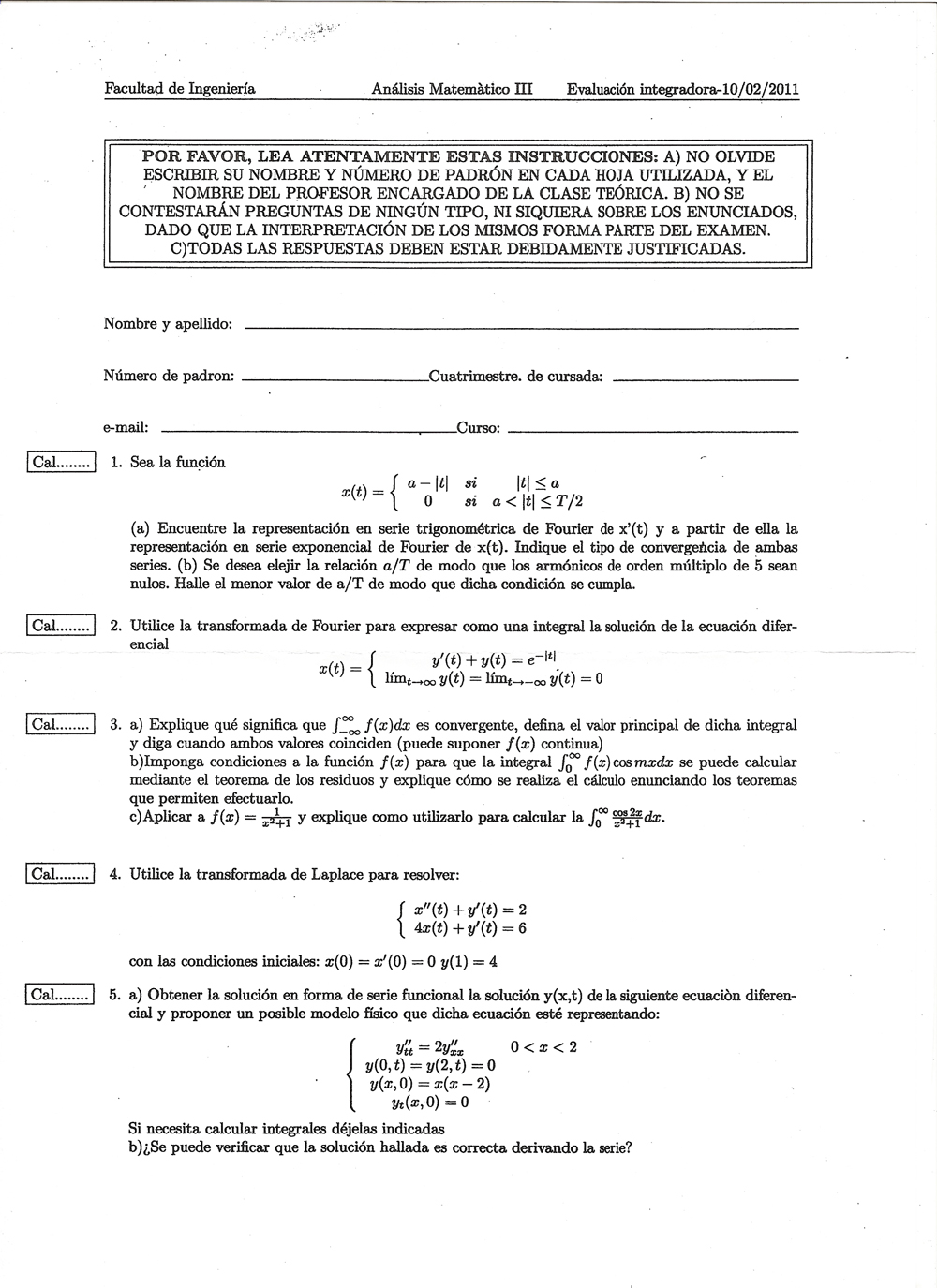 Transformada de Fourier. Existencia. Propiedades. Aplicaciones a la resolución de ecuaciones diferenciales.