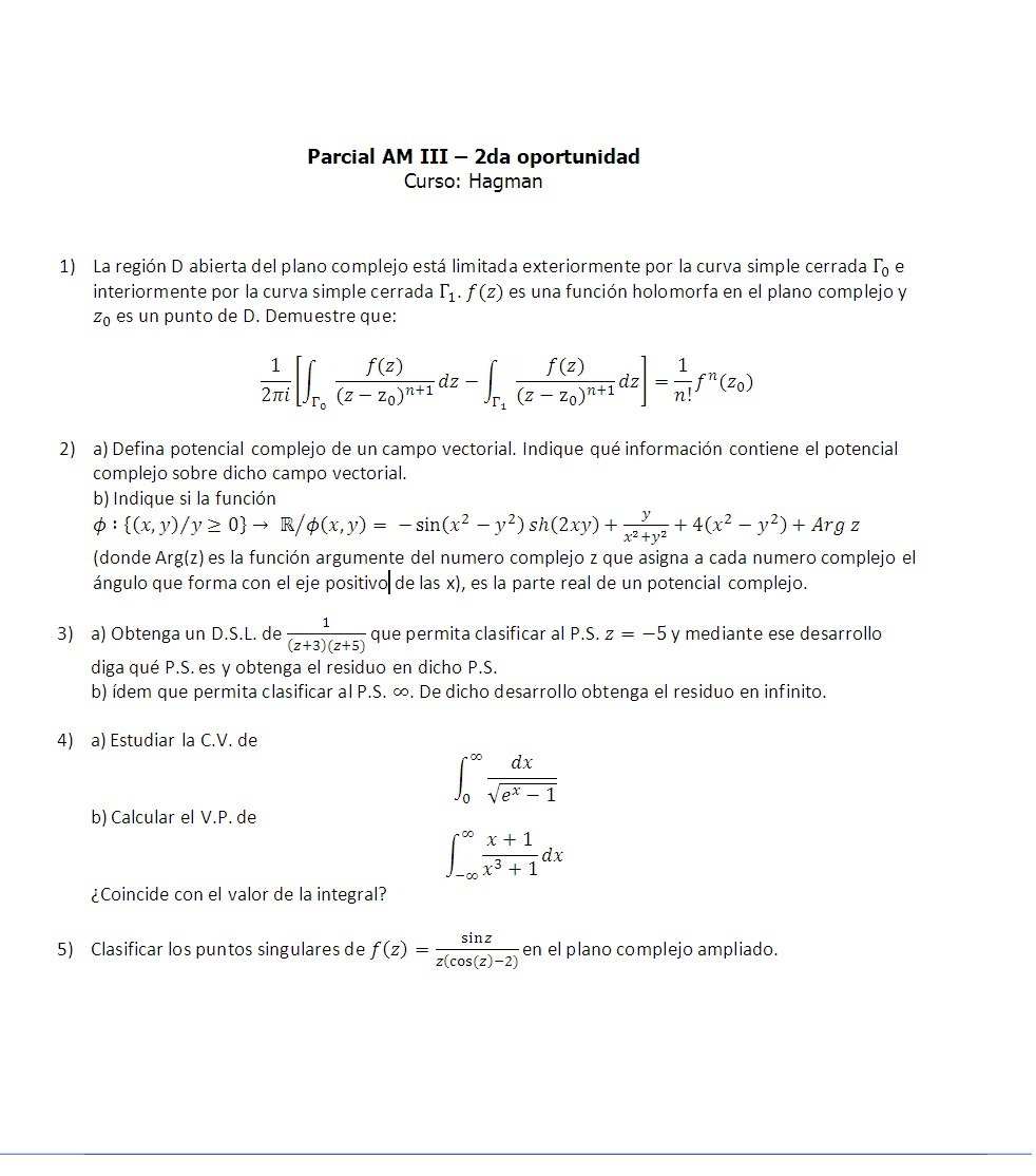 infinito. Residuos. Residuo en el infinito. Teorema de los residuos. Aplicación al cálculo de integrales de