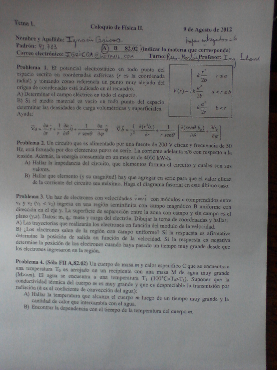 (Sólo Física II A)