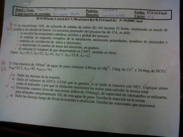 Se electrolizan 100 L de solución de sulfato de cobre (II) 3M durante 10 horas, empleando un ánodo de grafito y un cátodo de hierro. La corriente promedio del proceso fue de 12 A, se pide: