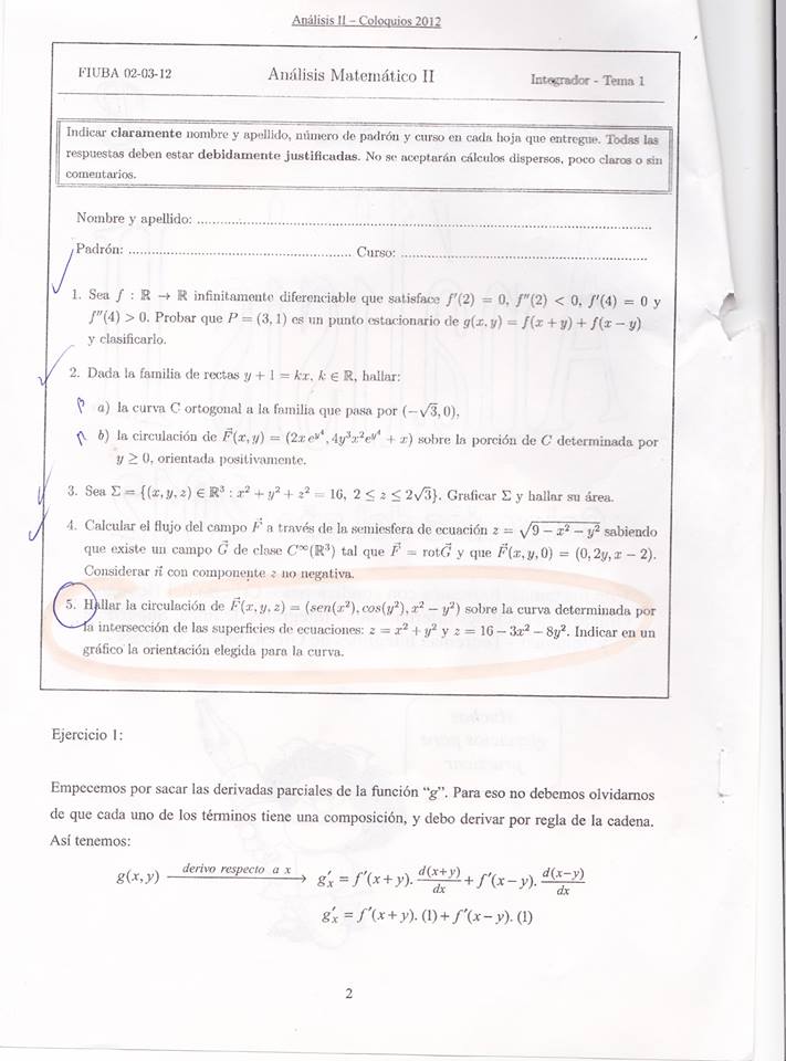 Examen Final - 61.03. Análisis Matemático II - 02/03/2012