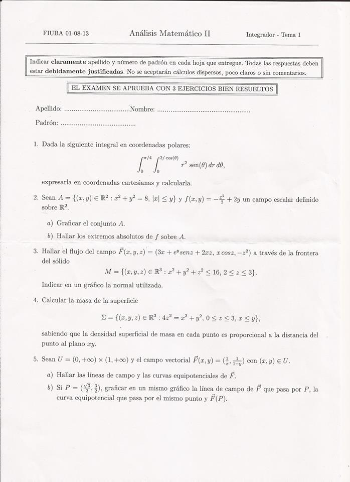 Examen Final - 61.03. Análisis Matemático II - 01/08/2013