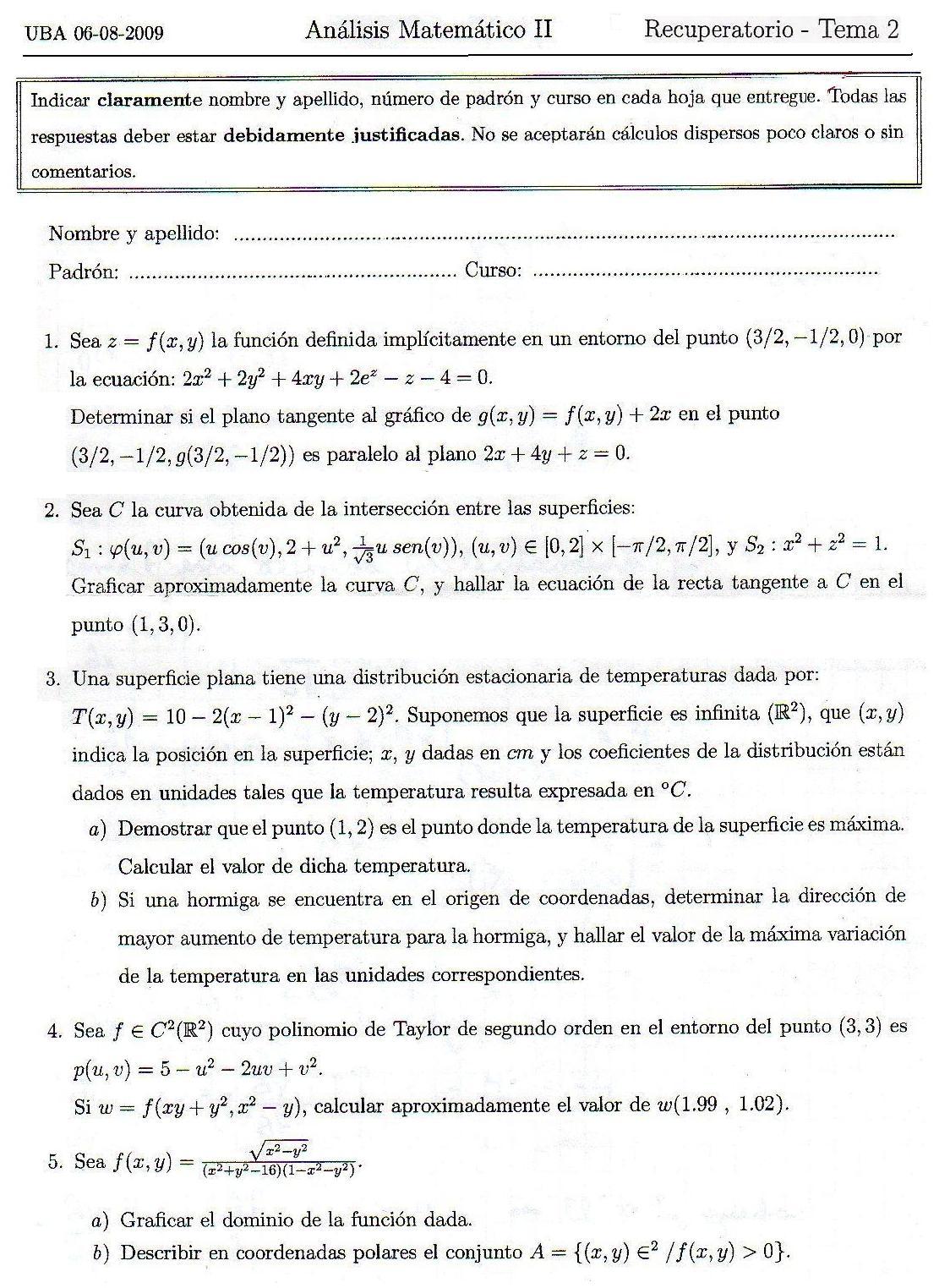 61.03 Análisis Matemático II - Recuperatorio - 06/08/2009