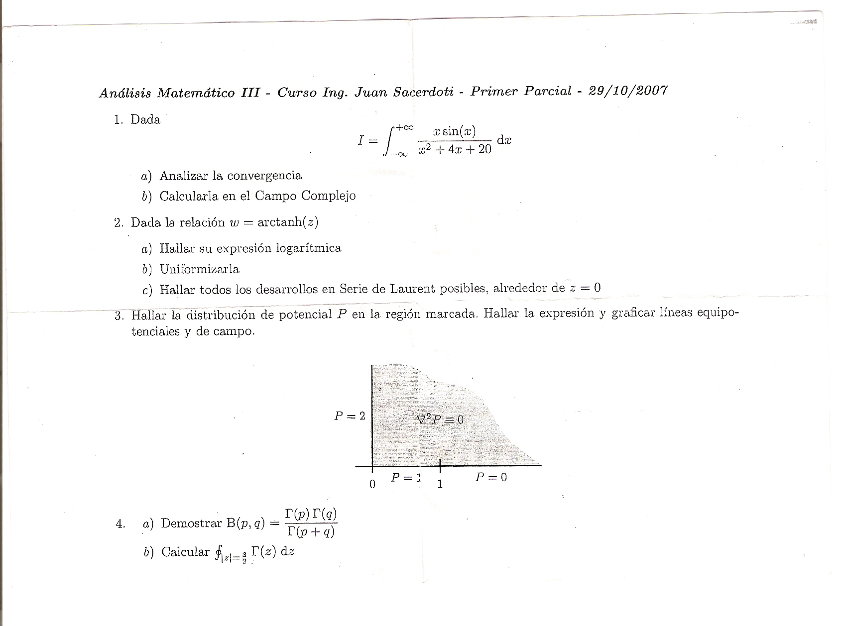 Examen Parcial - 61.10. Análisis Matemático III - 29/10/2007