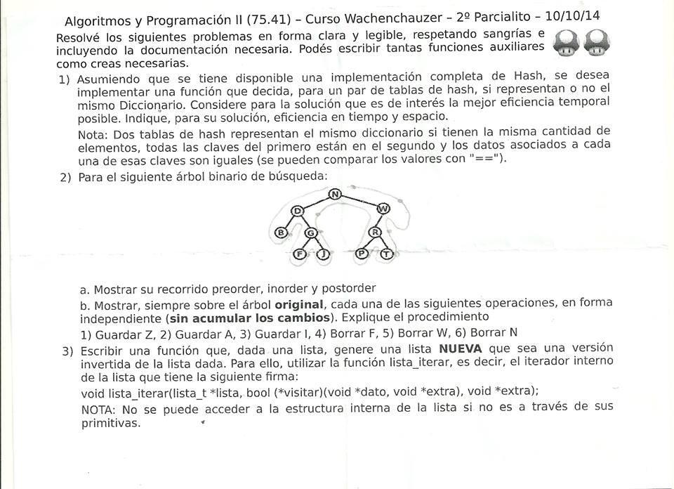 Examen parcialito - 75.41. Algoritmos y Programación II - 10/10/2014